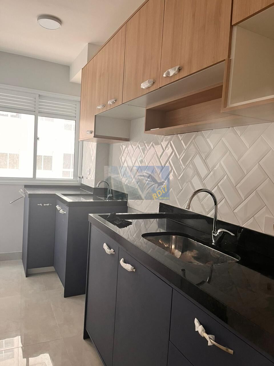 O apartamento conta com armários planejados na cozinha e área de serviço.